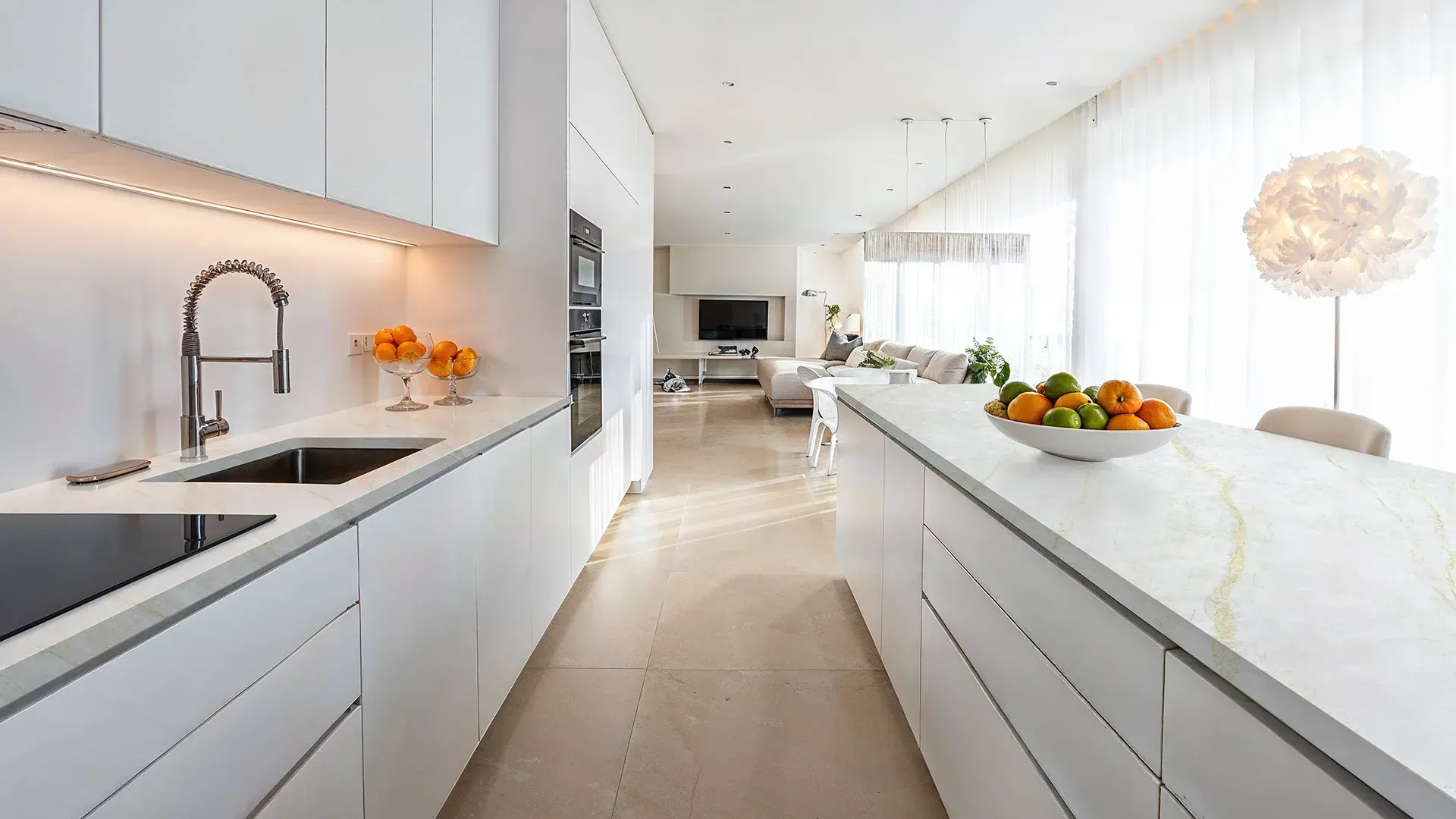 Ljóslitaður steinn með mjúkum, heitum tónum og fíngerðum æðum sem minna á náttúrulegan marmara. Hentar sérstaklega vel í hlý og notaleg heimili þar sem náttúran fær að njóta sín.